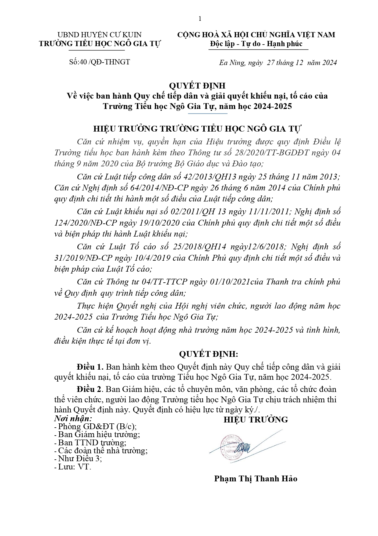 QĐ và Quy chế tiếp công dân 2024-2025